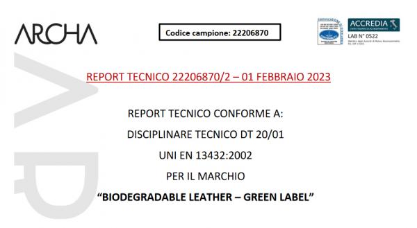 Le caratterizzazioni analitiche preliminari svolte sul campione “PELLE ORGANICA E METAL FREE AD USO SPECIALE/PELLETTERIA/AUTOMOTIVE“ sono servite per verificare l’assenza di metalli pesanti e fluoro.
